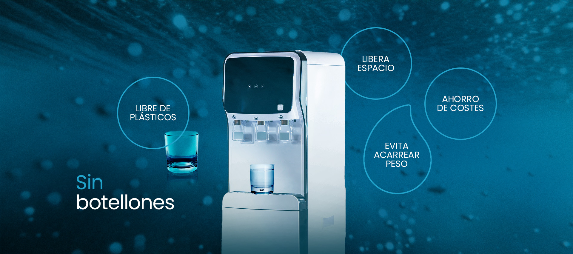 Libera espacio evitando la gestión de botellones y devoluciones de envases. Además, evita acarrear peso o tener que salir a comprar agua.